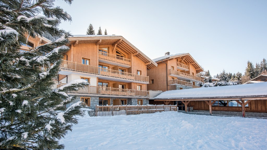 A 1700 mètres d'altitude, Le Parc des Airelles *** est une jolie résidence en bois et pierres offrant un superbe panorama sur la vallée, la forêt de mélèzes et les massifs environnants.